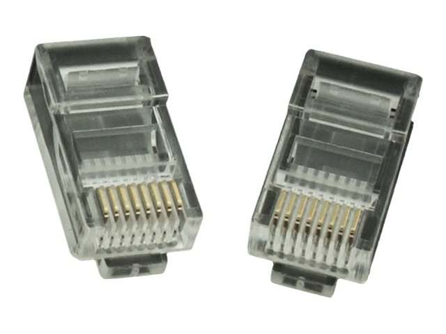 Modular plug 8P8C for solid LAN cable CAT5, UTP, 10 pcs. per bag | Modular 8P8C RJ45 plug, 30u” gold plated, 3-fork internal contacts for use with solid LAN cables