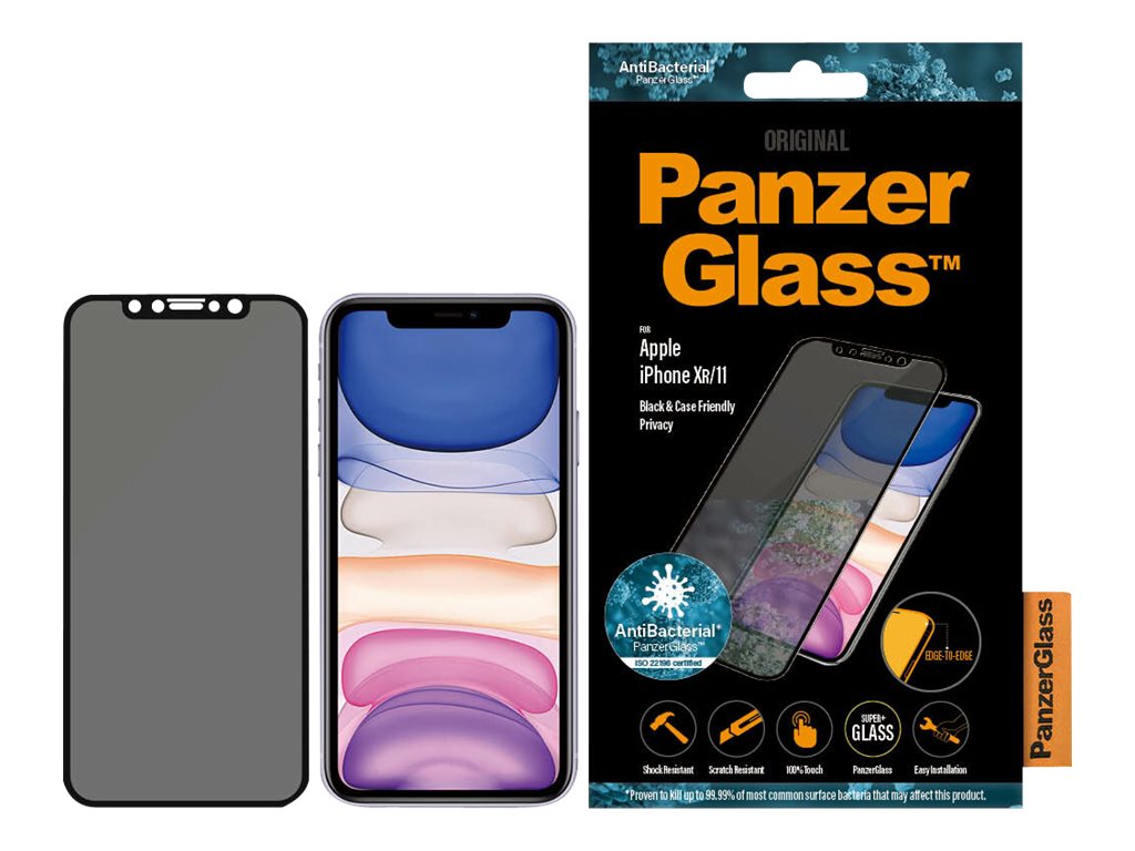 anzerGlass | P2665 | Screen protector | Apple | iPhone Xr/11 | Tempered glass | Black | Confidentiality filter; Full frame coverage; Anti-shatter film (holds the glass together and protects against glass shards in case of breakage); Case Friendly – compatible with all Cases; Anti-glare coating (reduces light reflection); Blue light reduction; Easy Installation with full adhesive; Oleophobic layer
