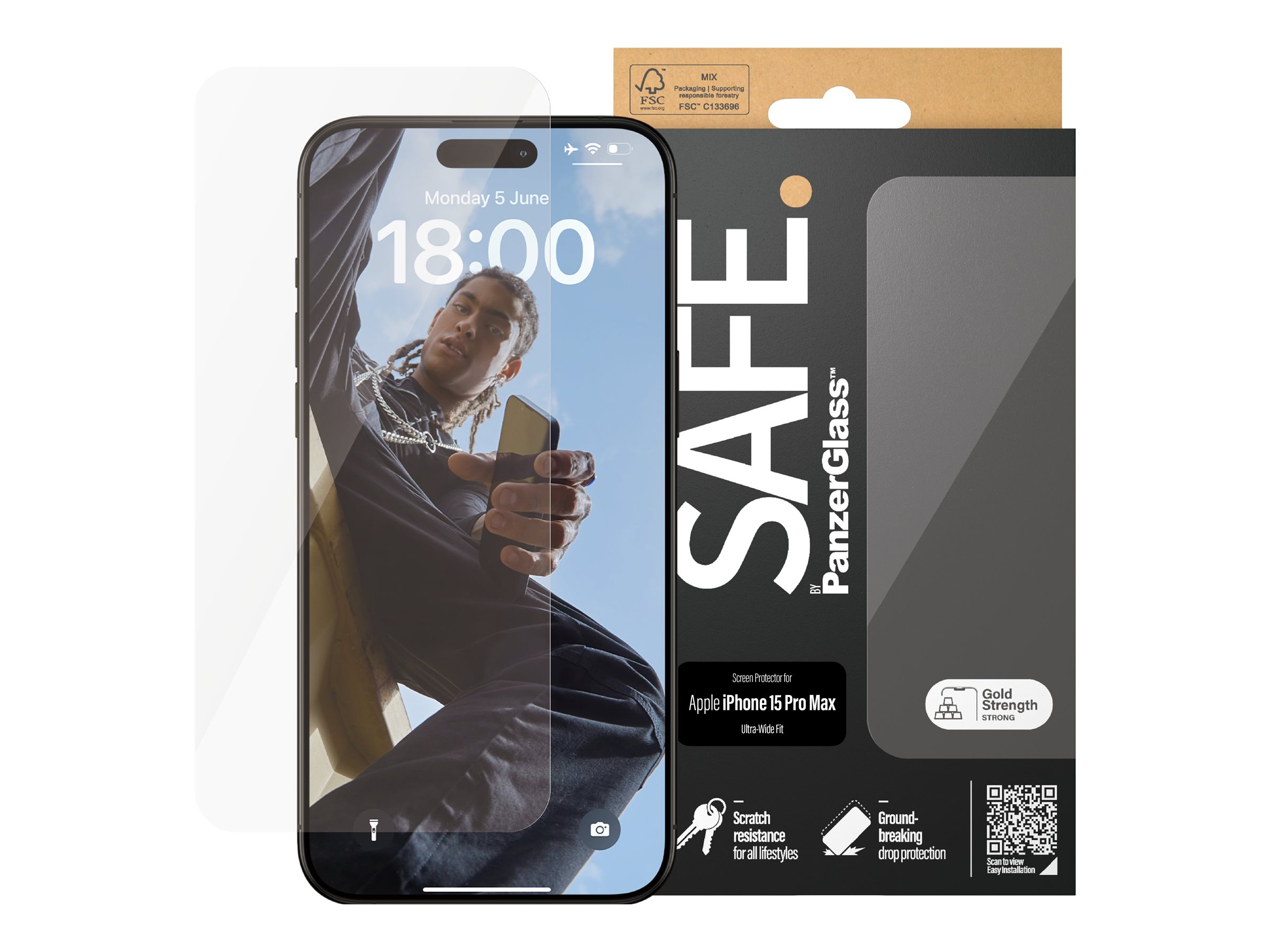 PanzerGlass | SAFE | Screen protector | Apple | Iphone15 PRO MAX | Glass | Clear | Ultra-Wide Fit