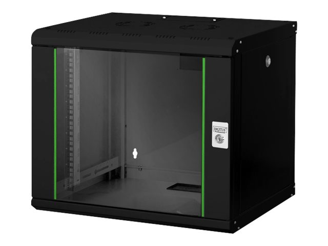 Digitus | Wall Mounting Cabinet | DN-19 09-U-SW | Black | IP protection class: IP20; Front door: Glass door, single opening; Cabinet type: Wall mounting cabinet; Equipment mounting depth min.-max.: 305-370 mm; Load capacity: 100 kg