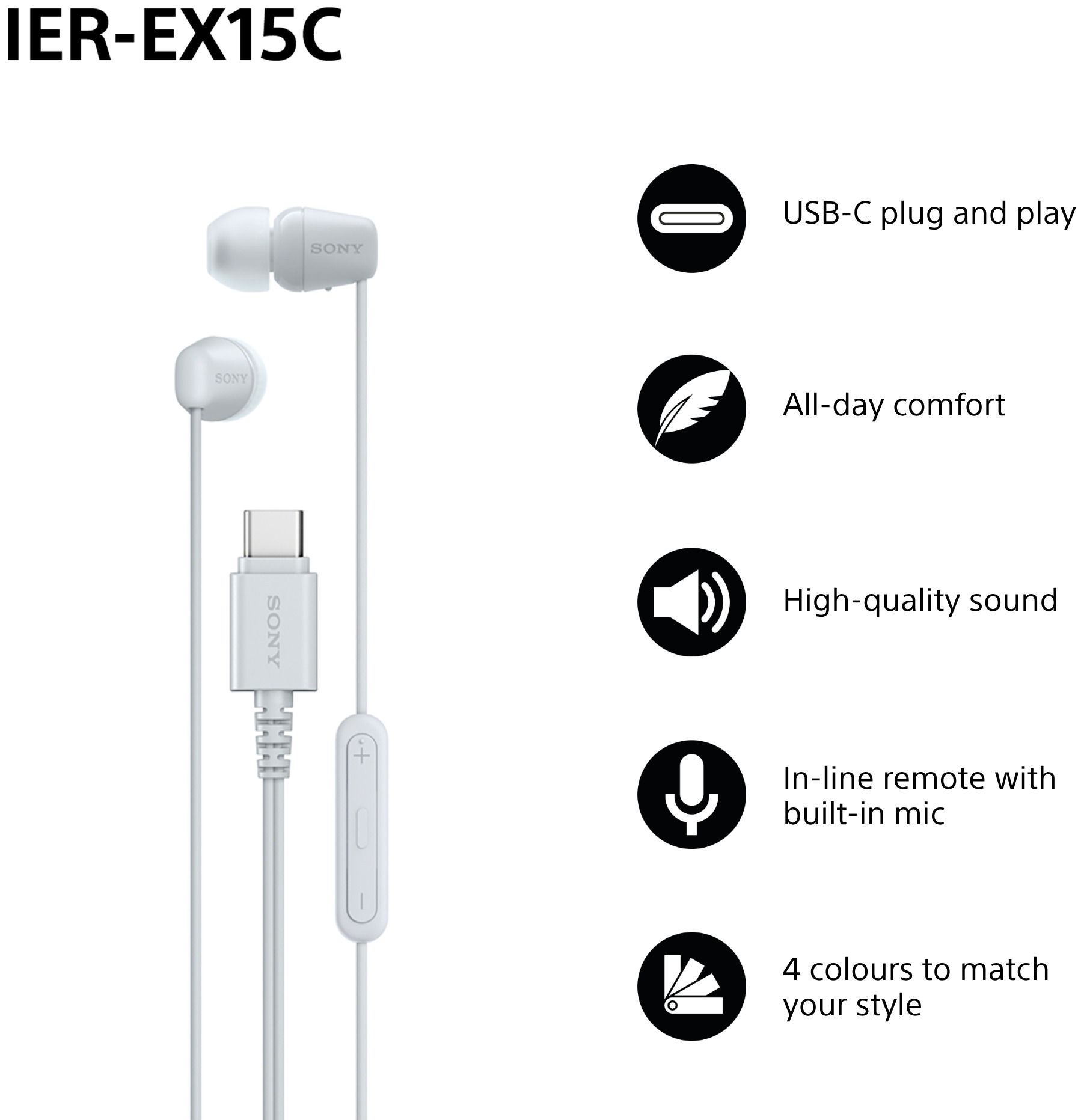 Sony Earbuds | IER-EX15C | Wired | In-ear | Microphone | White