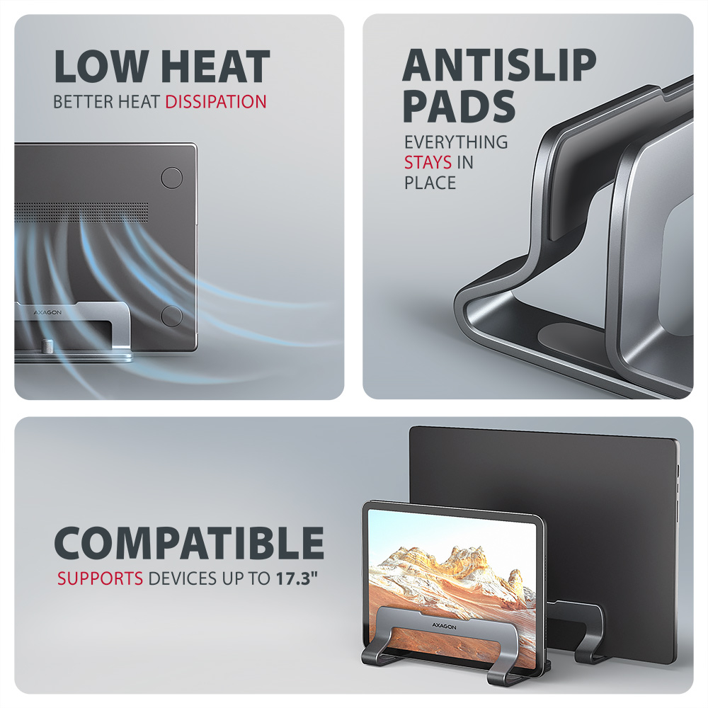 AXAGON STND-VG vertical stand for laptops and tablets | Adjustable width | 10-17.3 " | Grey